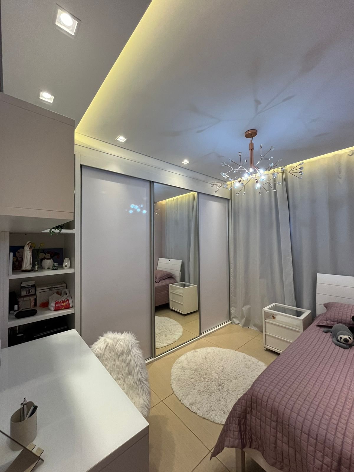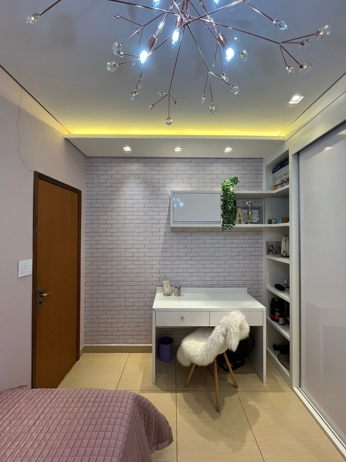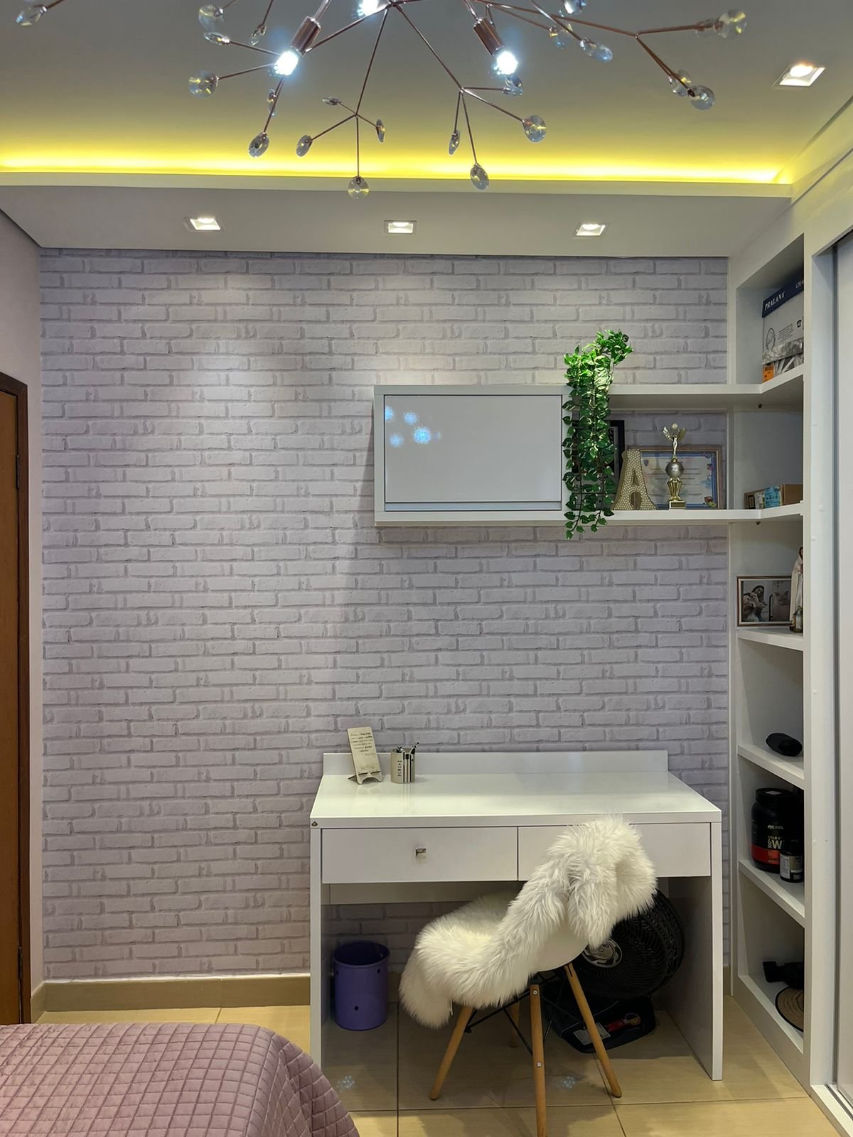 Quarto Feminino Quarto delicado e em tons claros em que a iluminação aconchegante fez toda a diferença no projeto.