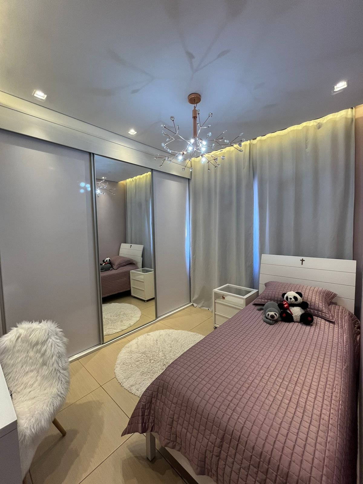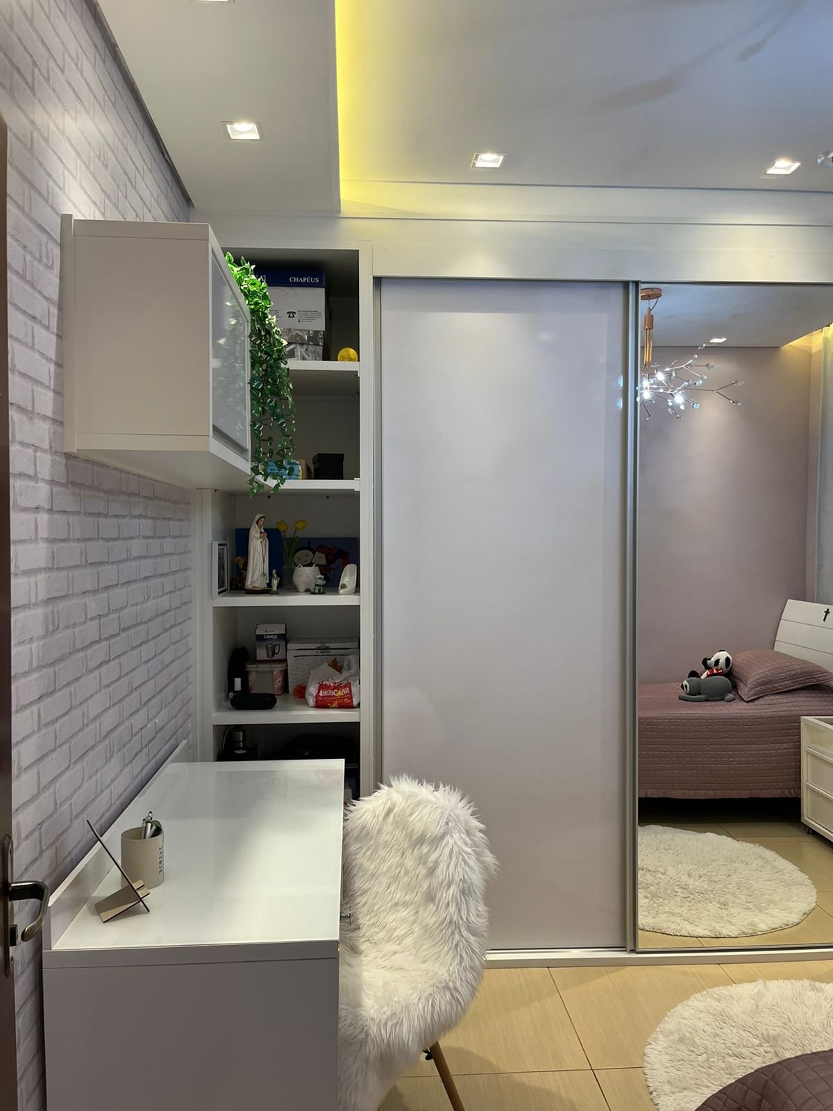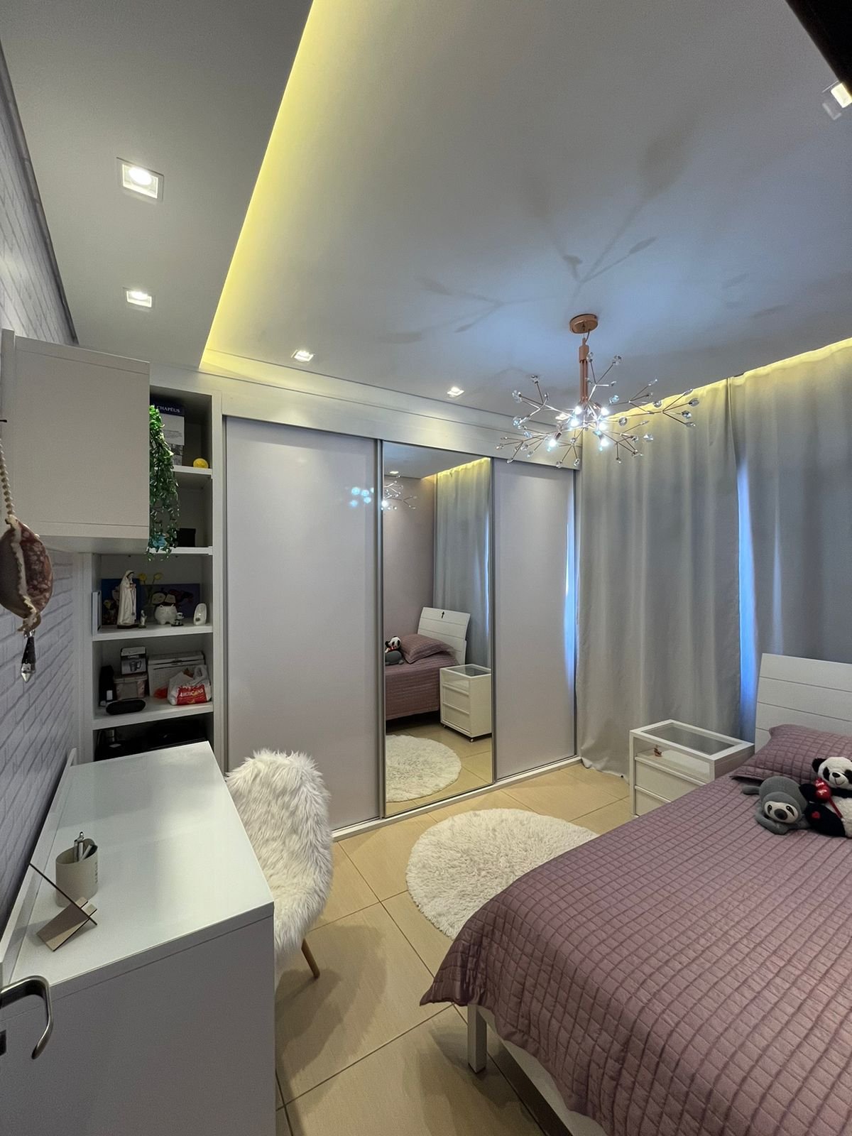 Quarto Feminino Quarto delicado e em tons claros em que a iluminação aconchegante fez toda a diferença no projeto.